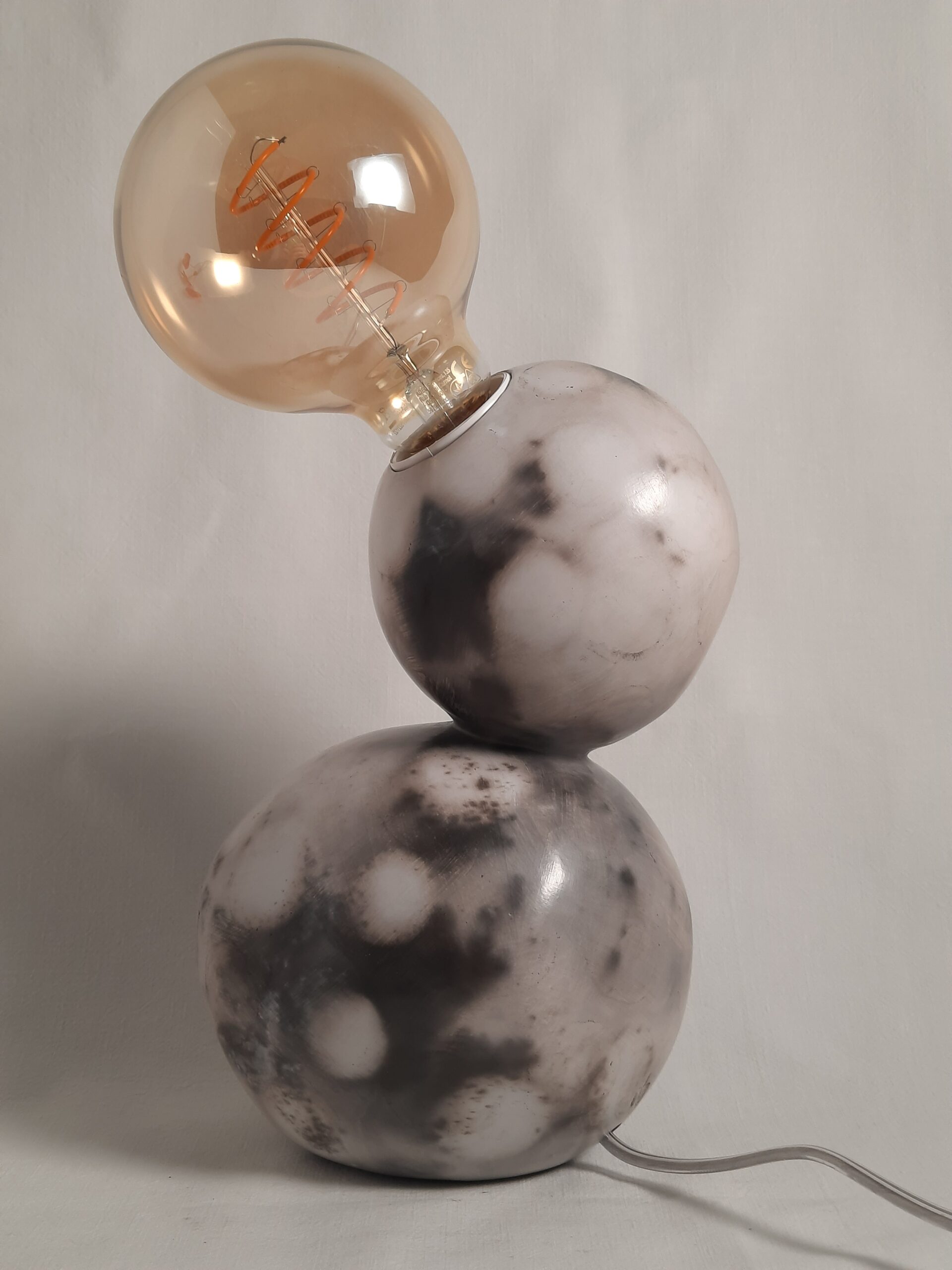 Finitura liscia satinata, inserto in foglia di rame comprensiva di lampadina e cablaggio.